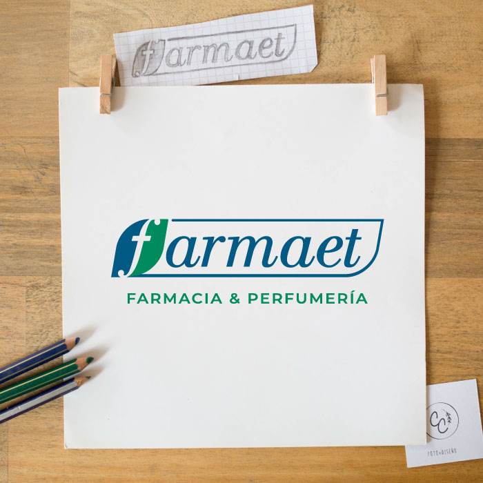 Diseño de logo + branding (imagen de marca) para Farmaet, Farmacia & Perfumería